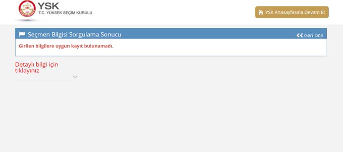 “YSK’nın internet sitesine göre ‘seçmen’ değiliz. Her seçim olduğu gibi internet üzerinden kaydımıza baktık ve bu sefer eşim de, ben de yokuz. Nasıl yani? 1,5 ayda dijital kütükten sildiniz mi bizi? Nüfus Müdürlüğü yolları göründü.”