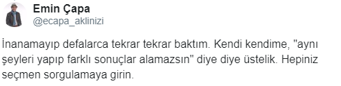Gazeteci Emin Çapa, Twitter’dan eşinin ve kendisinin seçmen kaydının silindiğini duyurdu. Çapa, “YSK’nın internet sitesine göre ‘seçmen’ değiliz. 1,5 ayda dijital kütükten sildiniz mi bizi?” dedi.